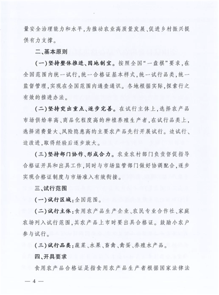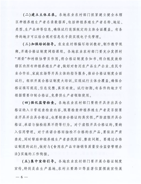 推行農(nóng)產(chǎn)品合格證既是落實生產(chǎn)經(jīng)營主體責任的迫切需要,也是構(gòu)建農(nóng)產(chǎn)品質(zhì)量*長效監(jiān)管機制的現(xiàn)實需求,更是落實《農(nóng)產(chǎn)品質(zhì)量*法》的必然選擇,對于促進農(nóng)業(yè)產(chǎn)業(yè)健康發(fā)展、確保農(nóng)產(chǎn)品消費*、保證人們的身體健康*具有重大的意義。